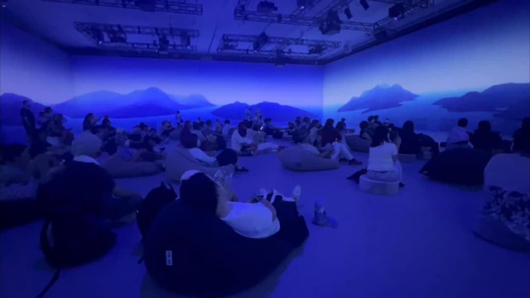 Akiko Yamashita, based in Los Angeles, and Sachiko Yamashita Grasseler, based in France, present their collaborative work L'onde bleue (Blue Wave), specializing in light installations and projection mapping. Originally from Sapporo, Japan, the sisters use this piece as a way to rediscover Japanese aesthetics from an international perspective.